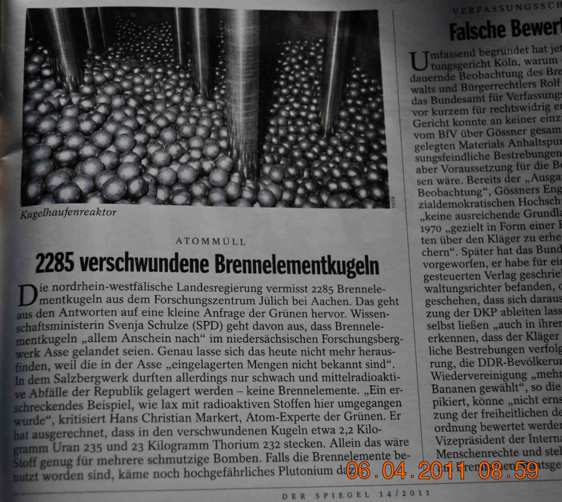 Der Bundesregierung sind über 2000 radioaktive Brennelementekugeln verlorengegangen, wie bedauerlich, könnte doch so manches Kunstwerk in der einen oder anderen Fussgängerzone aus ihnen gebaut worden sein ? Da würde doch so manche Stadt im neuen Glanz der Atomkugeln erstrahlen ???