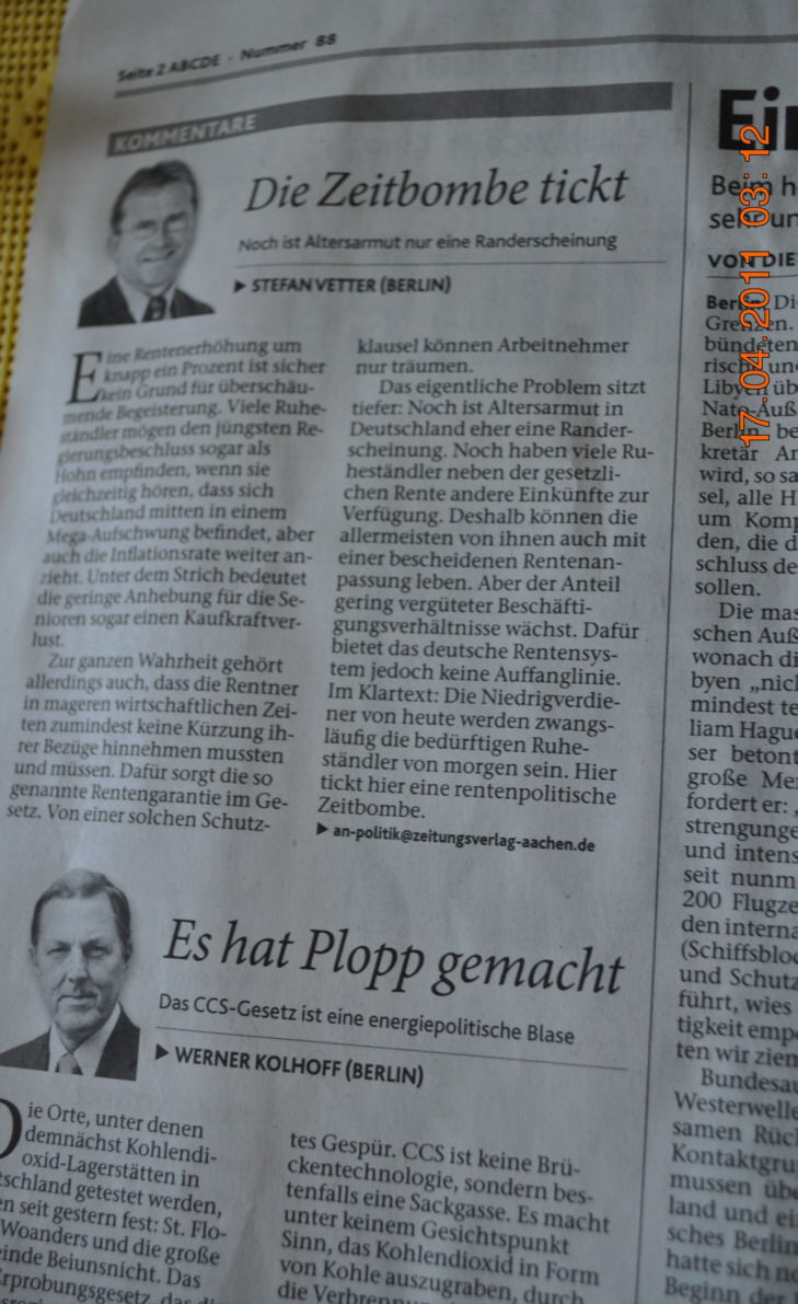Da kommen schlechte Zeiten auf uns zu, Rentner die Bedürftigen von morgen, schreiben die Aachener Nachrichten. Ein Leben lang gearbeitet, auch im Ruhestand noch viel geleistet, viel erreicht, und die Rente / Pension wird von Pleitebankern und Politganoven verzockt. Die “Qualität” unserer Eliten misst sich also nicht nur im Staatsdefizit sondern auch in der Altersarmut der Rentner und Pensionäre. Wir alle leiden doch unter den Heilsverbrechen einer Gesellschaft die viel versprochen hat, Bildung, Versorgung der Alten, Arbeitsplätze, Recht und Gerechtigkeit, Lebensqualität und vieles mehr und deren Heilsverbrechen sich jetzt als pure Abzocke und Veruntreuung von Volkseigentum entpuppen.