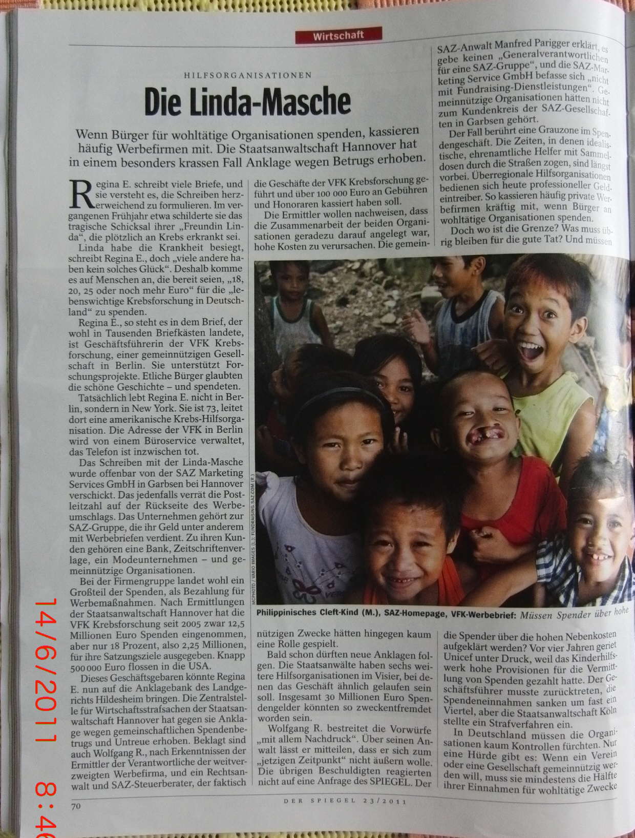 Ihr Artikel „Die Linda Masche“ Spiegel Nr. 23 / 2011