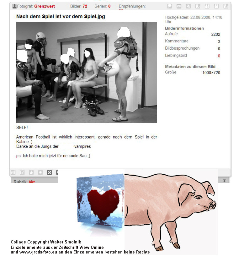 Malle Krix Wumm Bumm Dumm war ein großer Kerl (Wahlspruch: “Ich bin so high, dass muss Tech sein) und ein begnadeter Ingenieur, der sich furchtbar langweilte und davon träumte einmal ganz nach oben zu kommen. Leider waren viele andere insgesamt besser wie er und geeigneter für Führungspersonen, diesen Umstand wollte Malle Krix Wumm Bumm Dumm nun ändern. Als Kind reicher Eltern war sein Erbhof schon gepachtet gewesen als er geboren wurde, er hatte nie die Klasse seines Vaters gehabt, der sich noch mühsam alles selber erarbeitet hatte, seine Eltern waren durchaus nette und gute Eltern gewesen, leider hatten sie es Malle Krix Wumm Bumm Dumm zu einfach gemacht, er konnte viel zu schnell alles haben was er wollte, eben nur keine echte Klasse und Charakter. Und dann diese Langeweile, Furchtbar. Und dieser Neid auf die die weniger hatten aber besser waren, deren Existenz allein schon eine blasphemische Beleidigung für sein Dasein waren. Leistungsgesellschaft, alles Quatsch, als Spross reicher Eltern kannte er die Strippen an denen gezogen werden konnte, besonderen Spass hatte es ihm immer gemacht die besseren in seine üblen Spässe hereinzuziehen und dann für seine Untaten brummen zu lassen. Eine schöne Methode dieses naive Pack loszuwerden. Als Mitarbeiter einer internationalen Behörde hatte er in der zweiten Reihe einige Macht, ein gutes Gehalt, eine willige Sekretärin und den Auftrag seinem Netzwerk, seiner Seilschaft den Rücken freizuhalten. Die eigentliche Arbeit delegierte er auf diese kleinen Erbsenzähler die von den Dingen etwas verstanden für die er in seiner Grösse nie Zeit gehabt hatte, er wollte sich nicht eingestehen, dass er dazu auch nie die Qualität gehabt hätte diese Zusammenhänge zu verstehen. Eben hatte er seine Sekretärin im Akt – tenraum, N-Akten-Raum, was für ein herrlich dekadentes Wortspiel, vernascht und eine Line Koks gezogen und zur weiteren Abstumpfung eine Dosis Ketamin eingefahren, während er seiner Sekretärin etwas von den Amnesiepillen gegeben hatte, vielleicht wurde die kleine Schlampe ja reden, man wusste ja nie und er war ja schon eine coole Sau.... Sein erweiterter verarmter Geist ersann ein neues Wortspiel „Amnesie“-pillen, Anamnese, toll, was die kleine Schlampe wohl für eine Anamnese beim Arzt haben würde falls es ihr nachher schlecht ging... Ich halte mich jetzt für eine coole SAU.... Collage; an den Einzelelementen bestehen keine Rechte (Original Bild) In seinem Geist erschien die Vision vom Design für sozialen Abschaum. Er selber hatte ja alle Voraussetzungen für den Weg nach fast ganz oben gehabt, antrainierte Gefühlskälte, Machtbesessenheit, einen Ehrgeiz der über Leichen ging und als verry enhandstes Add On eine gut gefüllte Datenbank, auf einer 1/8 Terrabyte großen Festplatte, das er sich just in time, also in Echtzeit facettenhaft (herrliches Wortspiel Haft in den Facetten), also Zusammenhanglos in die Birne ziehen konnte. Der Koks (reimt sich auf Jokes, dachte er) bewirkte gerade wieder eine schöne Allmachtsfantasie, sein Neurolüger sprach immer vom Cäsarenwahn und im Echo seines Traumas, träumte er davon der Prototyp des Menschen zu sein die ISO-Norm der Humanität und ihr Schöpfer, der Intelligent Designer. Er hatte gelernt ein begnadeter Schauspieler zu sein, im Kreise seiner degenerierten Kumpels sprachen sie immer vom Sauspieler, und verstand es meisterlich Gefühle zu simulieren. Er machte sich also ans Werk, piff einen Gassenhauer von Westernhagen, „Freiheit“ -was für ein Glück dass er aufgrund seiner Stellung, der Gnade seiner reichen Geburt und der Rückendeckung seines Netzwerkes jede Freiheit hatte- kam an die Stelle des Liedes „der Mensch ist leider nicht naiv, der Mensch ist leider primitiv“ griff in die Tasten seiner SeilschaftzugBrainbeklobsigkeitmanipulationsmaschine und lies ein paar Soldaten sich zum Gassenhauen aufstellen, er selber als befehlshabender Offizier. Herrlich jetzt noch dass ganze mit dem Verstoss gegen die die Standesehre des Soldaten begründen, coole Sau. Das Spiel „Malle Fitz“ kam ihm in den Sinn, schnell programmierte er ein sich ständig veränderndes Labyrinth, an jeder Ecke stellte er einen Avatar seiner selbst auf, der stereotyp die gleichen Mechanismen mit anderen Produkten feilbot. „Gnädige Frau, ohne mein Produkt sind Sie nichts, sie benötigen es für ihr Glück und ihre Schönheit, es wird die konsumale Kälte aus ihrem Herzen vertreiben, sie werden damit ihrem wahren Wert -innerlich lachte er wieder „WarenWert“, dumme Schlampe- zum Ausdruck bringen, ihre Lebenseinstellung wird sich damit völlig zum besseren wenden.“ „Oh nein gnädige Frau (er dachte gnädige Sau und kicherte in sich hinein) billig ist es wirklich nicht, es wird sie schon einen grossen Teil ihres Vermögens kosten.“ „Gnädiger Herr Diederich, zum Ausdruck ihrer besonderen, aussergewöhnlichen Persönlichkeit benötigen Sie nur dieses Statussymbol und die gnädige Frau wird ihnen zu Füssen liegen (lügen und die Beine bereitwillig... dachte er) und stolz auf Sie sein...!!! Noch schnell ein paar negative Mimikries, so wie er selber um dass ganze Abzusichern, als Würze noch etwas unfairen, als fairen Wettbewerb getarnten Konkurrenzkampf, ein paar Maurer die Lebenswege zumauern, ein paar Klempner die Leitungen in den Frauen anderer Männer verlegen, die noch Nix On waren, besonders gut (schnell piff er „das ist alles nur geklaut, nur gezogen, nur gestohlen, nur geraubt, jawohl, dass hab ich mir erlaubt...). Dresscode, Stresscode, alles Kot... Jetzt noch alle gegeneinander hetzen, eine Priese niederen Instinkt, eine etwas langwierigere Konditionierung, ein paar Schubladen als Rastercluster, geschafft, der Prototyp vom Malle Krix Wumm Bumm Dumm. Eine Fernbedienung für die Satrapen und Lustobjekte, ein wenig Laplace'schen Dämon zur Kontrolle, etwas Horror und Angst als Steuerelemente, das ganze abgesichert durch sittenwidrige unkündbare Verträge und Süchte, be